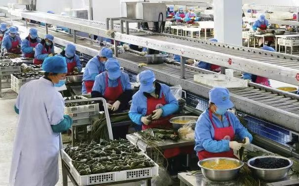 “粽子产业园投产不到几天,就接到北京、上海、天津、内蒙古等地客户的300万只粽子订单,其中30%来自网络平台。”张新文说。