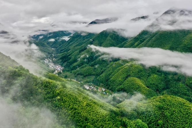 武夷山国家公园桐木村附近群山叠翠,云雾缭绕(2021年5月17日摄,无人机照片)。新华社记者姜克红摄