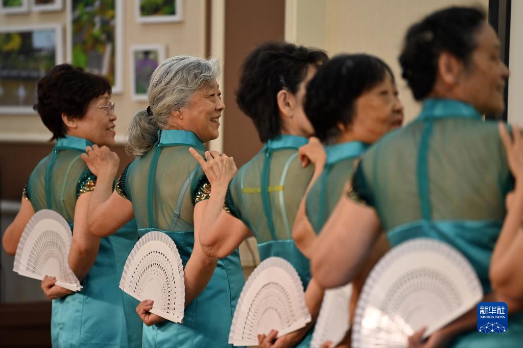 在天津市静海区一大型养老社区内,老人们在上舞蹈课(2021年8月30日摄)。 新华社记者 李然 摄