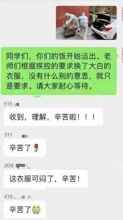 答:给隔离的学生送餐