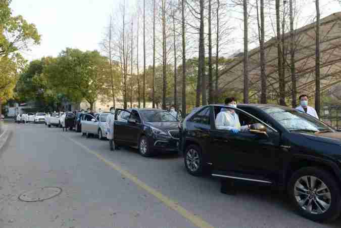 老师们自发在校园里开着私家车送餐