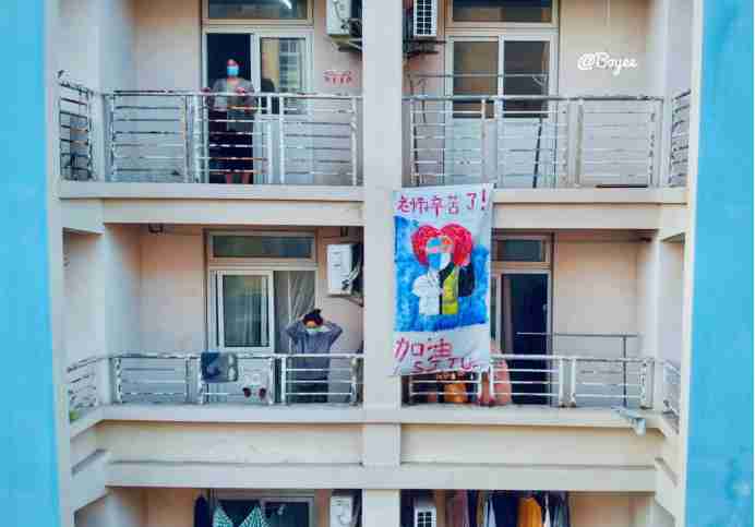 这引发楼内学生齐刷刷的感谢声