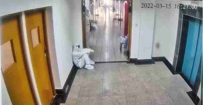 靠在楼梯口休息的监控画面