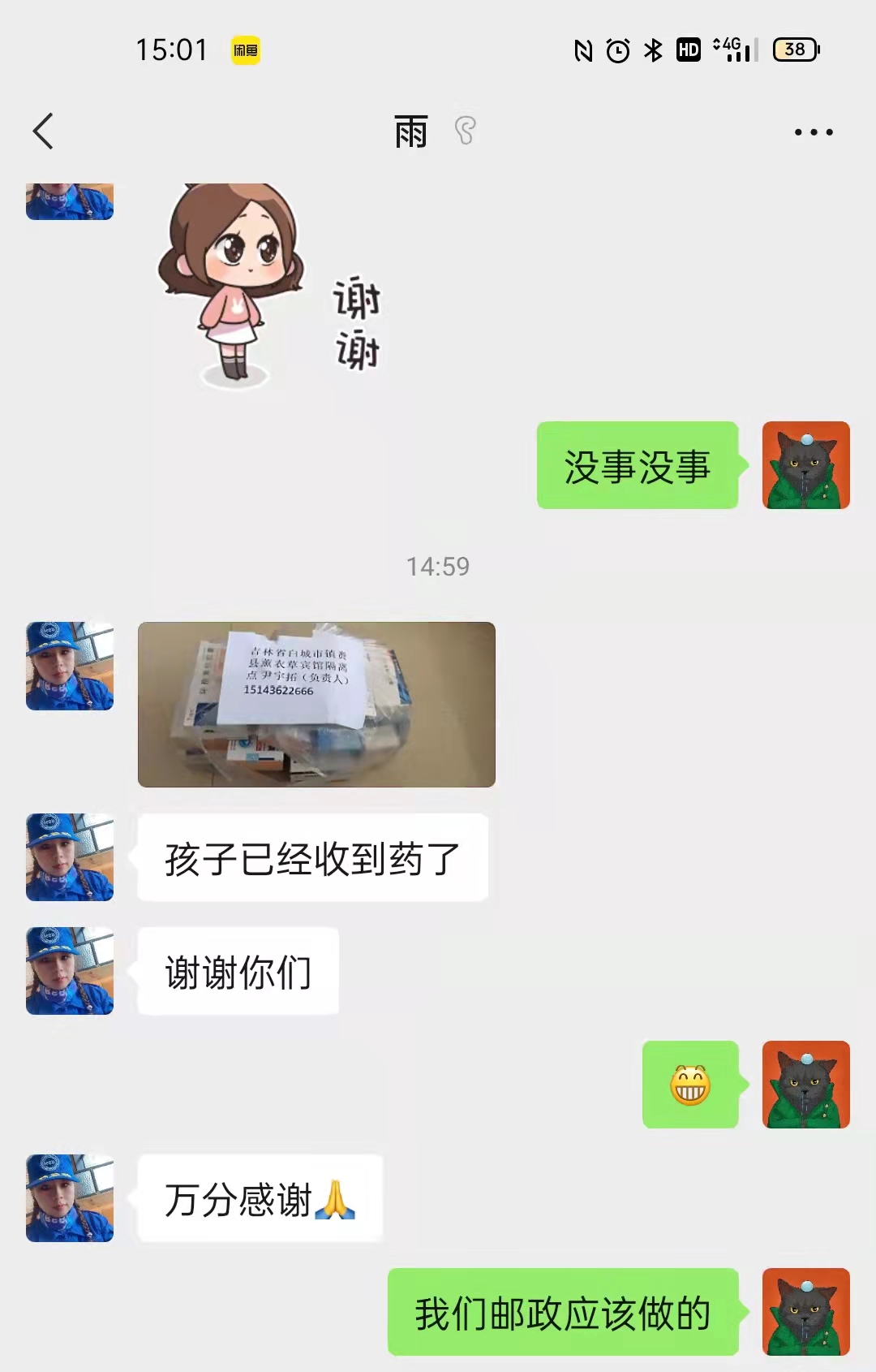 3月20日,吉林省邮政延边州分公司员工黄家奇在自家小区业主群里看到了一条转发信息:“我儿子目前被安置在白城隔离。他用来治疗血液病的药物马上断顿了……有没有人知道哪里有爱心车队,能帮我把药传递到白城?!”