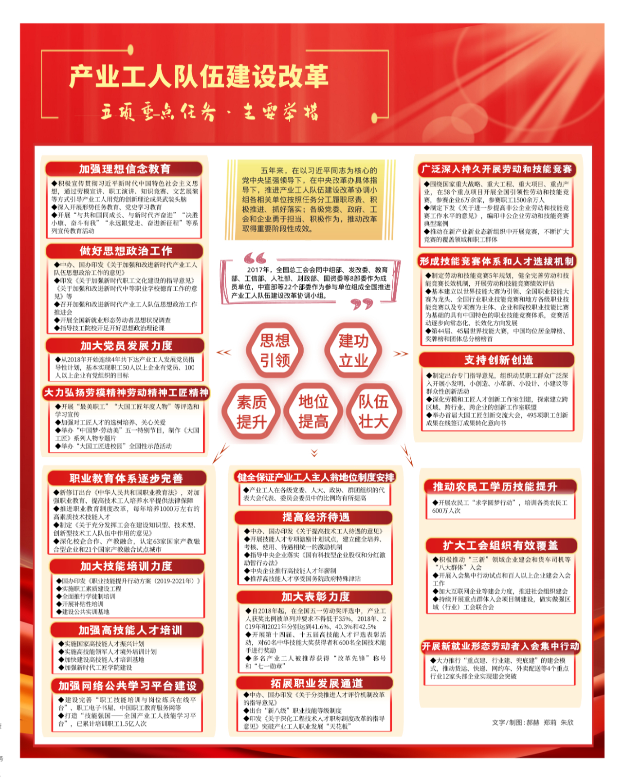 2017年4月14日,中共中央、国务院印发《新时期产业工人队伍建设改革方案》,启动了这项重大改革。五年来,在各方积极推进下,改革取得重要阶段性成效。让我们一起回顾成效背后的那些主要改革举措——