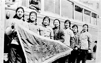 1978年获“优秀乘务员”称号的6路线乘务员手持线旗合影。