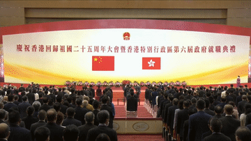 庆祝香港回归祖国25周年大会暨香港特别行政区第六届政府就职典礼7月1日上午在香港会展中心隆重举行。中共中央总书记、国家主席、中央军委主席习近平出席并发表重要讲话。