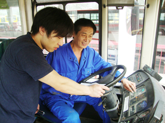 毕业后他就被分配到公交保修厂,成了第一个师傅王金瑞的徒弟。
