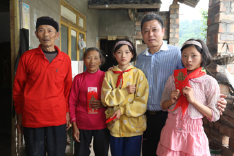 陈涛(右二)到四川雅安鑫福海博爱小学困难学生姐妹家中家访