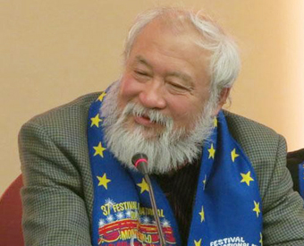 王建民戴着象征蒙特卡洛国际马戏节最高奖“金小丑”奖的蓝色围巾