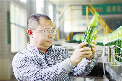 5月的一天,记者见到王海明时,他正在厂房的车间内检查啤酒的灌装情况。虽然厂房内非常闷热,但他还是专心地检查着产品生产线,并时不时地拿起灌装好的啤酒仔细查看。