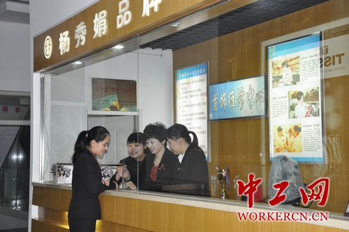 在德州百货大楼首饰商场入口处,一间玻璃隔断打造的不到十平方米的空间,这便是“杨秀娟品牌工作室”的小天地。2012年德百集团以她的名字成立了“杨秀娟品牌工作室”后,德百首饰商场将每周二下午定为“劳模接待日”,由杨秀娟及劳模团队专程提供服务。