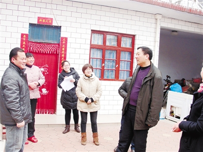 杜占雄(右)在辛店村入户察民情解民忧