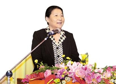 河池市人大常委会副主任、总工会主席吴胜梅在“劳模道德讲堂”上讲课。