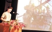 劳模道德讲堂宣讲员陈秋婷在演讲《电线杆上的舞者》。