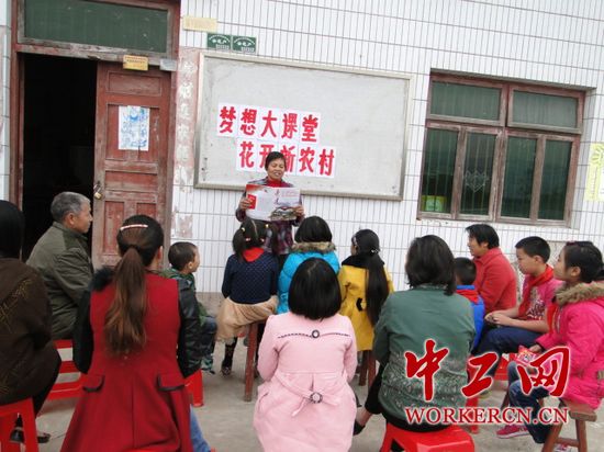 在李义芳的专家大院墙上贴着鲜红的醒目标语“梦想大课堂,花开新农村”十个大字。李义芳说:“农村中青年绝大部分外出打工经商挣钱去了,村里只剩下老年人、留守妇女和留守儿童。”她又说:“实现中国梦是我们每个中国人的事,农村要实现中国梦,是每个农民建设新农村的大事,因此做好这些人的思想工作,每个人都要有正能量,新农村建设就在眼前。”近几年参加这个专题学习的850多人都成为建设新农村的能手。