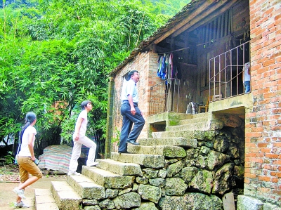 莫振高走访贫困生家庭。资料照片