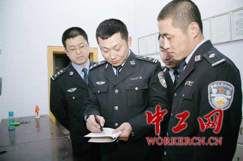 资料图:左二为吉林省松原市公安局视频监控管理支队支队长张艳明,在工作中。