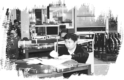 王钦峰在测量轮胎模具零部件。 本报记者 单保江摄