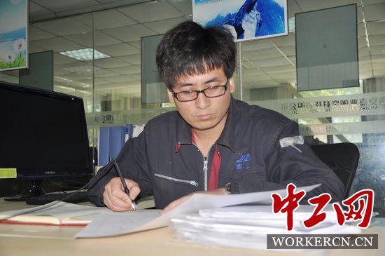 8:00,还没来得及喝水,在工艺室里,王永红开始主持一天例行的晨会,召集12名员工,处理前一天工作遗留问题,安排当天新的工作。“通过测量机的数据反映出是钻孔的时候,没有镗而是铣出来的” 科室主任杨万鹏和技术经理侯创,仔细汇报着工作中出现的各类问题。对照图纸,王永红分析着零件出现的超差,是因为钻孔的轴线有偏离,“干活的时候一定要保证精确度和整体装配的准确性”,提醒每一位员工后,从工艺单、提料单等,又详细安排了一天的工作。
