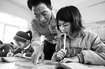 郭春鹏在辅导学生。⑤3本报记者张鲜明摄