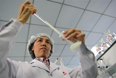 近年来,奶产品的质量越来越受到人们的重视。在首农集团北京三元食品股份有限公司位于大兴区瀛海镇的工业园内,随着现代化生产技术的运用,生产车间里只需要几个人就能完成大批商品的生产,很难见到过去众多工人忙碌的场景了,反而是检验室,由国家级技能大师白素琴带领的团队成员们,因为检验条目的增多,似乎成了厂区里,最“忙”的人。