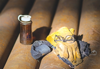 ◆眼镜、手套、袖套、灰帽子、水杯……这些都是张秀兰每日工作的必备品。整日与焊钳、锅炉打交道,张秀兰的手套总是锈迹斑斑,破得很快。如果只是脱线,张秀兰会用电胶带缠上几圈,大些的口子便用大头针别起来。但一双总挨不过两三个月。唯有眼镜与水杯,长久地陪伴,见证她的辛勤劳作。