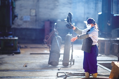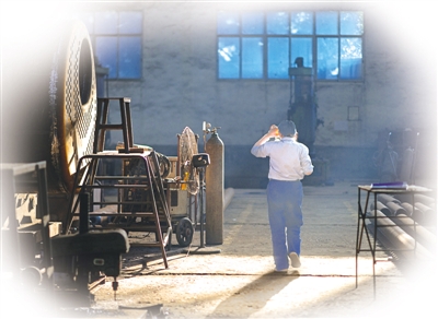 ◆走进噪音充斥的工作车间,可看到四处散落的钢铁制品,四周的墙上也沾满了一层厚厚的黑尘,就连空气都弥漫着焊条燃烧的特殊气味。但张秀兰在这样的环境里工作了近30年,早已习惯。结束一天的工作,她习惯性地摘下灰帽子,拍打自己身上的灰尘。