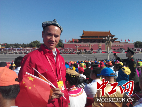 戴上花帽,我是维吾尔族人;穿上工服,我是石油工人。很多场合,我总是戴着花帽穿着红工服。在我参加纪念抗战胜利70 周年阅兵仪式上,尤其是这样。因此别人总能因为服饰注意到我,我担负的是新疆和中石油的双重形象。我主动向别人介绍新疆的美景、美食、风土人情和石油工人的工作,总是希望通过自己的努力拉近他们对新疆的距离感。