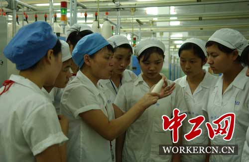 浙江春江轻纺集团 胡福秋在生产现场进行员工培训指导