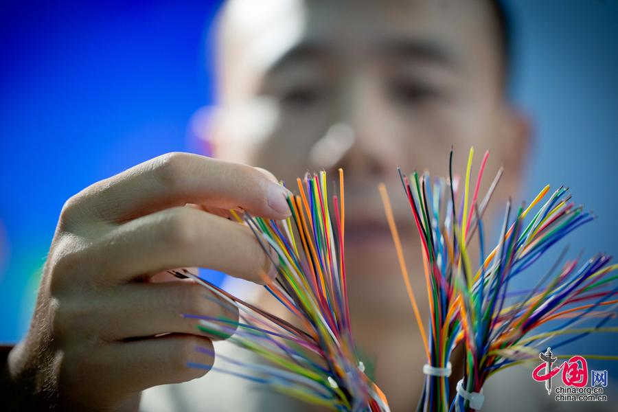 梁后健在为团队人员讲解网线知识。 王文 摄影