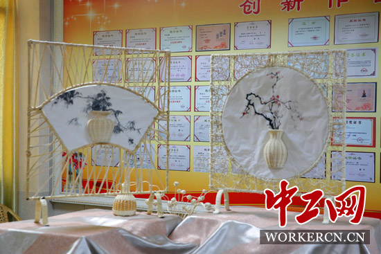 大学生在陈清河指导下的创意作品《藤艺遇见丹青》。(张晞摄)