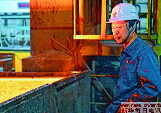 鞍钢炼钢总厂三分厂电气点检组长林学斌在生产现场(4月29日摄)。新华社记者 姚剑锋 摄