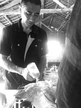 1999年,潘陆根选择了“退村进湾”,来到荒芜的“沙门坞”,投资10多万元搭建了3幢200平方米的简易鸡舍,养殖规模扩大到了8000羽。规模增大,烦恼也与日俱增。笼养鸡最怕疫情,一旦得病会迅速蔓延,成批死亡,那是养殖户的噩梦。有的不良养殖户会频繁给鸡投喂药品,但潘陆根绝不允许自己这样做。他到处去寻求解决方法,一次偶然的机会,他得知鸡吃蚯蚓可以提高产蛋率和增强抵抗疾病的能力。于是,他立即着手从外地引进“太平二号”蚯蚓种进行培育,搭建了猪舍和蚯蚓养殖大棚,放弃笼养,尝试了土鸡散养。