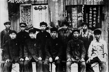 1950年,马恒昌小组建组初期10名老组员的合影。前排左起于忠山、谢溪华、马恒昌、祝普庆、徐景荣;后排左起黄焕瑞、章荣海、柳玉璞、董振远、赵连科。(马恒昌小组展览馆资料图)