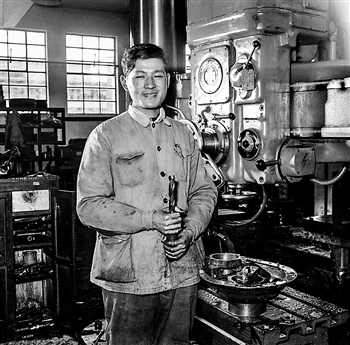 1958年3月,倪志福在车间工作台前。1953年,倪志福创造三尖七刃麻花钻,被称为“倪志福钻头”,大大提高了钻头的切削性能,延长了钻头的使用寿命,在国内引起重大反响。1985年,他作为牵头人之一发起成立了中国发明协会,为增强全社会的创新活力,提高自主创新能力发挥了重要作用。