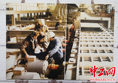 童选卿与外方专家一起在现场进行方案研究时的场景