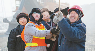 鞍钢集团矿业公司齐大山铁矿生产技术室采场公路管理业务主管郭明义(见上图左二,新华社发),把雷锋作为人生榜样,将走雷锋路作为人生选择,甘当路石,默默奉献,时时处处发挥共产党员先锋模范作用,矢志不渝传承雷锋精神,被党中央、国务院授予“改革先锋”称号,被中央文明委授予“当代雷锋”称号。