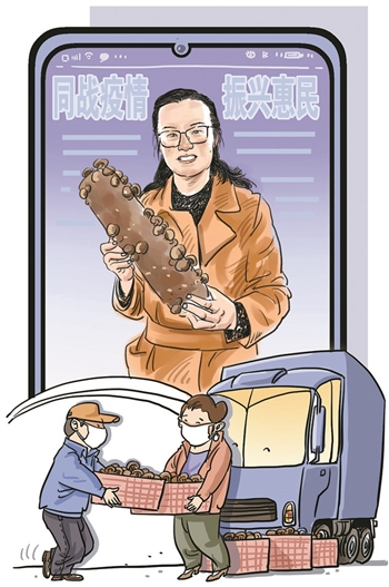 另一方面,一些农户的产品却面临滞销的困境。为了让农户的产品尽快卖出去,2月24日,吴元元与惠民县委书记殷梅英一起,走进淘宝直播间,开展“同战疫情·振兴惠民”全民直播活动,开启现场直播“带货”,当晚就卖出2000份脆片、2000斤香菇。为了尽快发货,吴元元早上7点就来到合作社,与同事们一起将现场采摘的蘑菇打包,一忙就是9个小时。“我要把直播间搬进大棚里,顾客下单后,可以跟随我的镜头,想要哪个蘑菇,我们就现场采摘!”吴元元说。