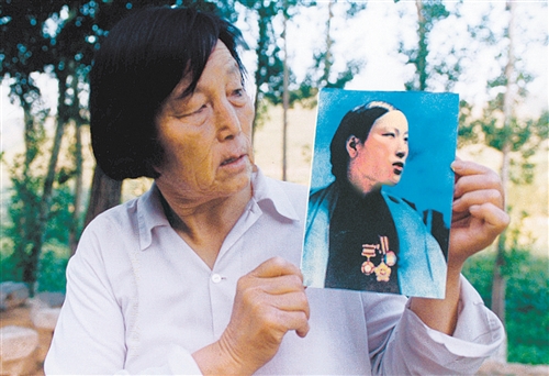 申纪兰八十多岁时,向人们展示上世纪五十年代赴丹麦出席世界妇女大会时的图片。(资料照片)