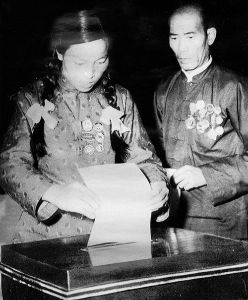 申纪兰出席第一届全国人大会议时,参加选举。(资料照片)