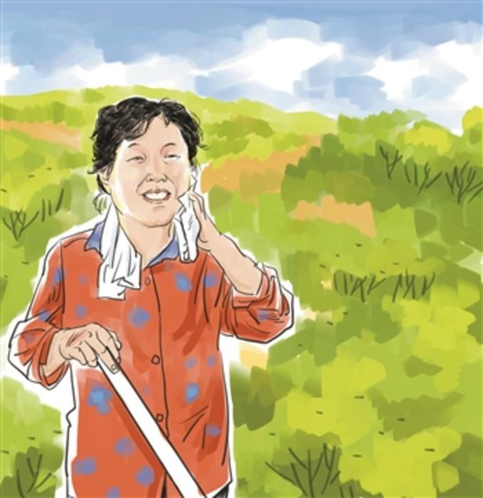 她不时揩揩脸上的汗水,眯眼望着这无边的绿色,笑容在她脸上慢慢绽开,像极了路旁盛开的格桑花。