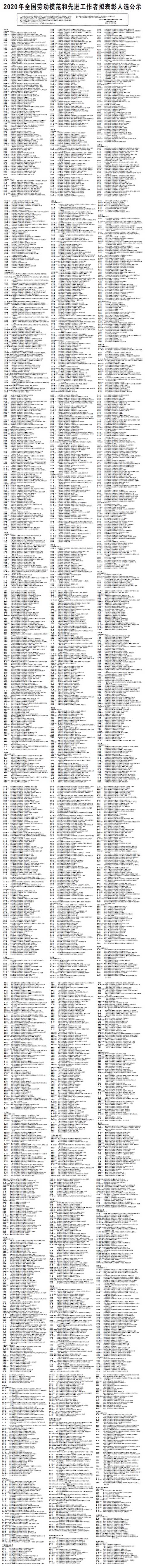 根据中共中央办公厅、国务院办公厅关于2020年全国劳动模范和先进工作者评选表彰工作的通知要求,为体现公开、公平、公正原则,充分发扬民主,广泛接受社会监督,实现评选过程让群众参与、评选结果让群众认可,现将2020年全国劳动模范和先进工作者拟表彰人选予以公示。如有不同意见,请于2020年10月19日17时前,以电话、电子邮件或信函等方式向表彰大会筹委会办公室反映(信函以到达日邮戳为准),工作时间为9:00—17:00。