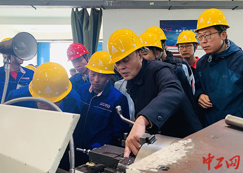“不光是展示,还要让大家知道怎么用。”从报告厅移步到生产车间,在一台车床前,芦巨才接过一块合金的钢棒,指导着徒弟杜国庆装好刀具,亲自启动旋钮,只见钢丝旋舞,通过一“削”一“掏”,变成了一“管”一“棒”。徒弟杜国庆说:“不同的掏料刀都有不同的用法,每一把刀具的背后,都有一段岗位革新的故事。”