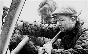 王进喜,原大庆油田钻井指挥部副指挥、钻井队长,1959年全国劳模大会集体代表。1960年5月,王进喜正在参加会战的大庆油田,一口油井出现井喷,没有压井用的重晶粉,他当即决定用水泥代替。成袋的水泥倒入泥浆池搅拌不开,王进喜大喊一声“跳”,跃进齐腰深的泥浆中,七八个工友也跟着跳进去,最终遏制住了一场事故。