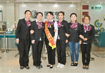 荣获陕西省劳动模范的朱艳和营业厅同事合影。