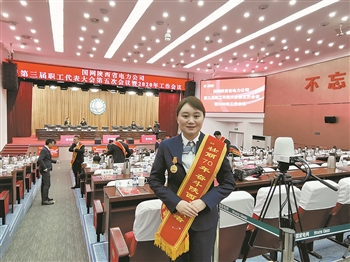 朱艳在国网陕西省电力公司第三届职工代表大会第五次会议暨2020年工作会议现场。