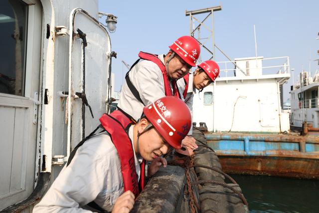10:00-出发前,陈兆海提醒徒弟戴上安全帽、穿好救生衣,“船上作业,安全防护一定要做好。”