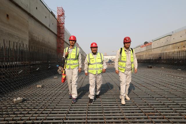 13:00-休息片刻过后,陈兆海又带领着团队来到大连湾海底隧道项目干坞施工现场,对地板、侧墙、预埋件等进行验收检测。