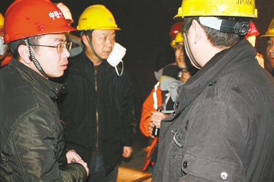 饶胜斌和管理局、监理部、设计院技术人员一起,研究施工方案,决定改变设计走向提前转弯,在支洞右侧边墙29米处继续掘进。当掘进186米时,掌子面接连出现最大涌水量300L/s的 5处涌水,最大水流射出13米以上。4个月时间过去了,支洞施工掘进不足200米,能保证工期目标吗?